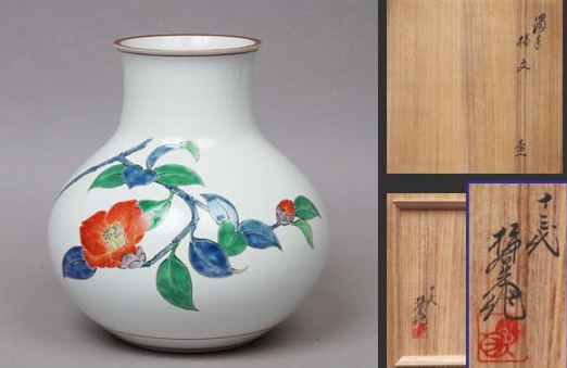 濁手 椿文壷 十三代酒井田柿右衛門が