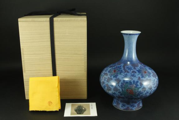 十三代今右衛門 色絵吹墨草花文花瓶 人間国宝がヤフオクで販売されています。